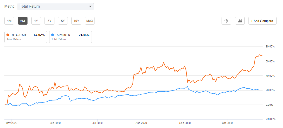 Bitcoin is up 0.3% to $13,116.28. See Bitcoin performance over the past six months: