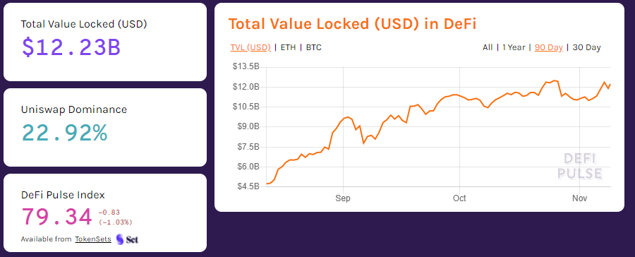 To: Julius Wong who wrote (164937 ) 11/8/2020 10:12:17 PM From: TobagoJack Read Replies (1) | Respond to of 217571 The day Berkshire buys into bitcoins, am guessing, shall make news ... I may not be long enoughu.today JPMorgan Says Institutions Ditching Gold ETFs for BitcoinThe decentralized finance (DeFi) market is rapidly rebounding after two months of capitulation . Major DeFi tokens dropped anywhere between 40% to 80% from the September peak. Due to the sheer intensity of the marketwide plunge of DeFi from September to October, DeFi tokens are swiftly recovering. Yearn.finance (YFI), as an example, rose by 117% within two days from November 6 to 7. Such a large short squeeze in the DeFi market was expected after months of underwhelming performance. From September 1 to November 5, YFI dropped by over 82%. Hence, even with the massive upsurge during the weekend, it is still down by 65% since its peak. The price of Yearn.finance (YFI) on Binance. Source: YFIUSDT on TradingView.com Funds Might Be Re-entering the DeFi MarketAccording to Spencer Noon, the head of DTCCapital, said funds are re-buying DeFi bluechips or promising projects. He wrote : “The game of chicken has officially ended. From what I’ve seen, funds are re-buying #DeFi blue chips. All on the back of $BTC price action and likely ATH incoming.” The timing for a DeFi market recovery is fitting because it comes after a massive Bitcoin rally. Historically, as seen in 2017, the alternative cryptocurrency (altcoin) market surged after a Bitcoin uptrend. The narrative is similar to 2017 because of the post-halving cycle. In 2017, Bitcoin hit a new peak a year after the block reward halving in 2016. The 2020 to 2021 cycle is the same in that Bitcoin saw a block reward halving in May of this year. Andrew Kang, who runs Mechanism Capital, suggested the DeFi market saw a clear trend reversal. After such a major capitulation phase, Kang noted that the market would likely see fewer sellers. “People looking for a dip in DeFi after this clear trend reversal are going to be stuck buying higher Too much capital waiting to buy and now not enough sellers The weekly candles are going to be mental,” he said . The strategist also noted that shorting the DeFi market has become less compelling. There is less upside for shorts and a high-risk of large losses. Based on the risk-to-reward ratio, there could be a lower demand to aggressively short the market. A Positive Metric is the TVLThe total value locked (TVL) across DeFi protocols is at $12.23 billion, which is near to its all-time high. Despite the steep plunge of major tokens, the market itself has remained relatively resilient. The TVL metric measures the total amount of capital deployed across DeFi platforms and protocols. With over $12 billion locked in, there is still a clear demand for DeFi services within the cryptocurrency market. The total value locked in DeFi. Source: Defipulse.com In the near term, however, DeFi tokens could still be reflective of the performance of Ethereum. For now, ETH is recovering against Bitcoin and the U.S. dollar, showing strength in momentum. Sent from my iPhone
