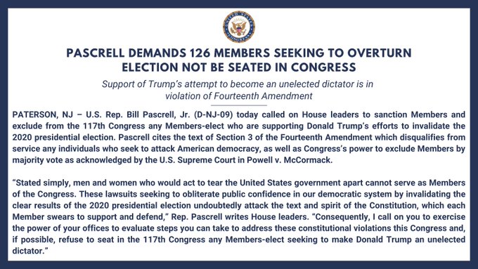 Today I’m calling on House leaders to refuse to seat any Members trying to overturn the election and make donald trump an unelected dictator.