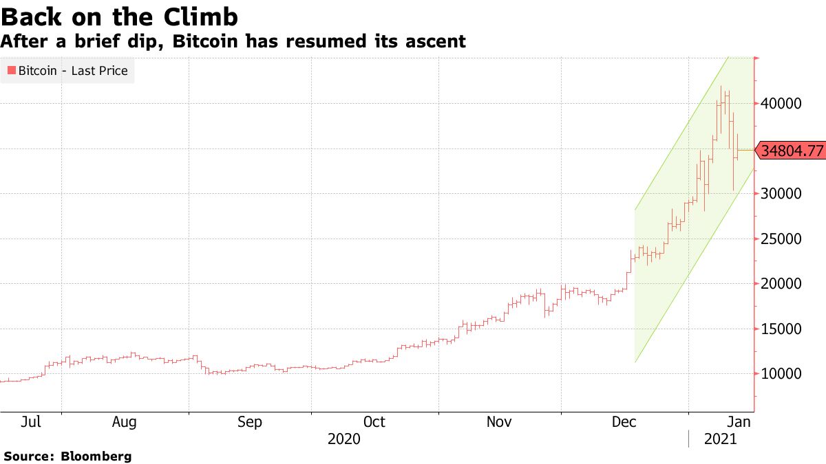 To: carranza2 who wrote (166989 ) 1/12/2021 6:28:43 PM From: TobagoJack Respond to of 217927 BTChttps://www.bloomberg.com/news/articles/2021-01-12/bitcoin-snaps-slide-while-leaving-everyone-in-dark-on-true-worth?sref=Jsv6y4ePBitcoin Rebounds While Leaving Everyone in Dark on True Worth Eric Lam 12 January 2021, 16:21 GMT+8Bitcoin rebounded after Monday’s steep plunge left investors grasping for clues about what lies ahead for the world’s largest cryptocurrency. The digital coin rose 4.9% to $35,616 as of 11:30 a.m. in London, following yesterday’s 11% slide. The latest bout of roller-coaster volatility recalls past boom and bust cycles including the 2017 bubble, and has investors debating whether this is a healthy correction or the end of the latest bull run for cryptocurrencies. “We think a pull back is healthy,” said David Grider, lead digital strategist with Fundstrat Global Advisors LLC, who added he doesn’t think the recent price action indicates that Bitcoin has already topped out. Wealth For You Help us deliver more relevant content for you by telling us about yourself. Answer 3 questions to tailor your experience. Investors who bought the digital coin a year ago are still sitting on gains exceeding 300%. Pinpointing who is mainly responsible for the rally is one of the many crypto mysteries -- Bitcoin funds, momentum chasers, billionaires, day traders, companies and even institutional investors have all been cited. Just as hard is working out what caused the recent two-day drop of as much as 26%. For some, a bounce in the dollar may be among the reasons. The greenback has snapped a prolonged losing streak after rising U.S. government bond yields bolstered its allure. “There’s signs that retail investors are taking profit,” said Ryan Rabaglia, the global head of trading at OSL. “Heightened volatility is often correlated with an uptick in retail participation.” At the same time, the world remains awash with monetary and fiscal stimulus, and some of that wall of money could yet gravitate to crypto assets. Bitcoin believers continue to tout the digital currency as a viable hedge for inflation risk and the potential debasement of fiat currencies. Some forecasts for its long-term price range from $146,000 to $400,000 . Read More Before it's here, it's on the Bloomberg Terminal. LEARN MORE