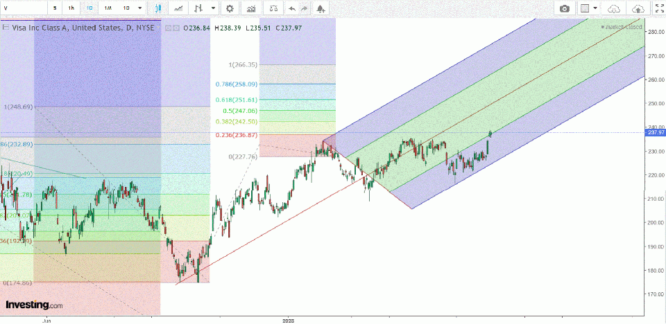 V - Time to revisit the big V. It's nice when 3 separate tools line up in the same direction. The double bottom you see from last fall yields 248.69 for the preliminary target... and these are almost always exceeded. Next, the prevailing fork should have its top line dinged by price, currently at 268+. Finally, a hidden pivot target (hpt) of 266.35 exists. Triple power, triple play, on TRIPLE TRADES!! Get'em girlz!!