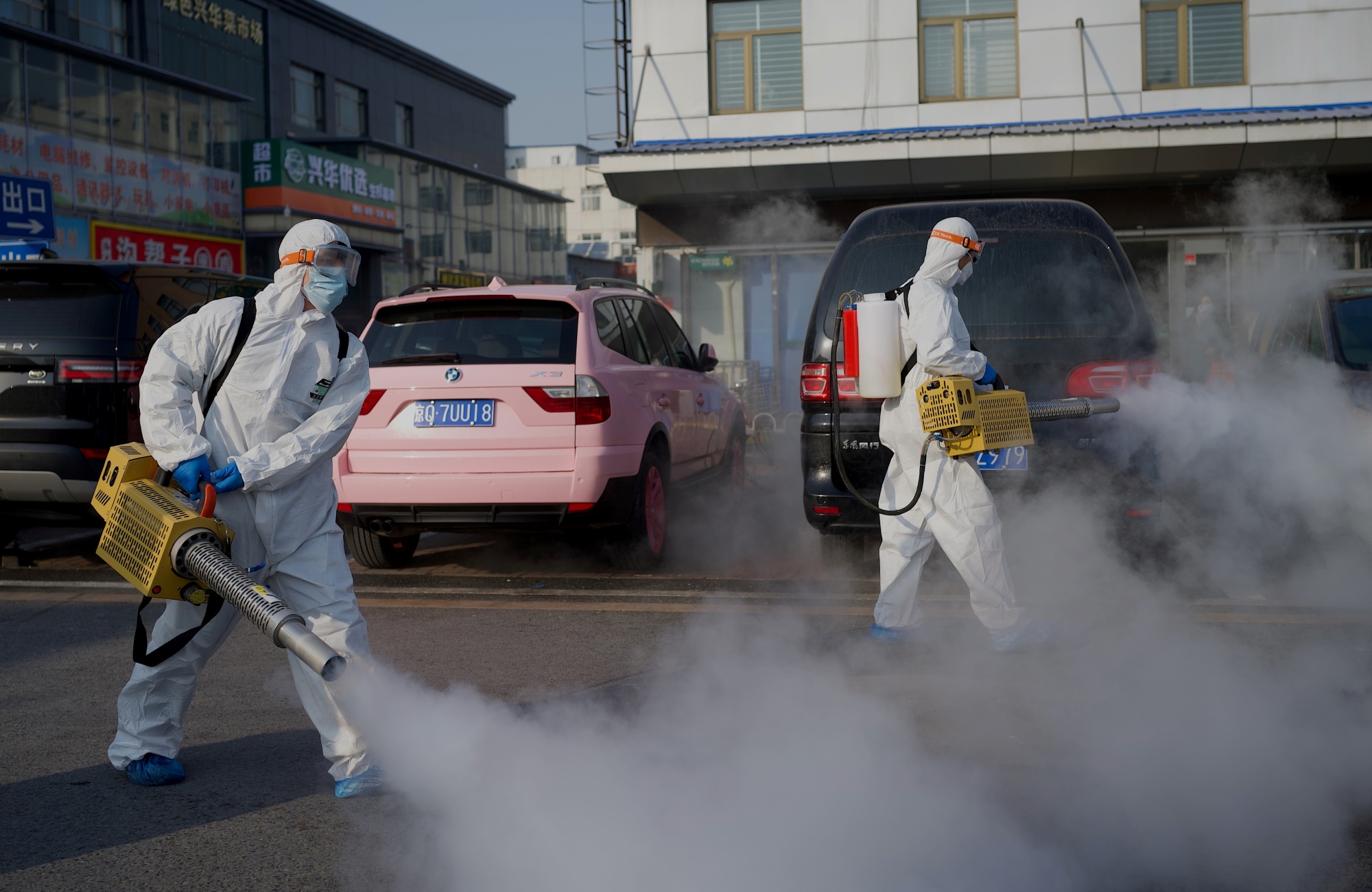 Disinfection of a market in the Daxing district of Beijing on Jan. 21. China is not only testing millions of people every week, but also tons of frozen food imports and the containers they arrive in every day for traces of the pathogen.