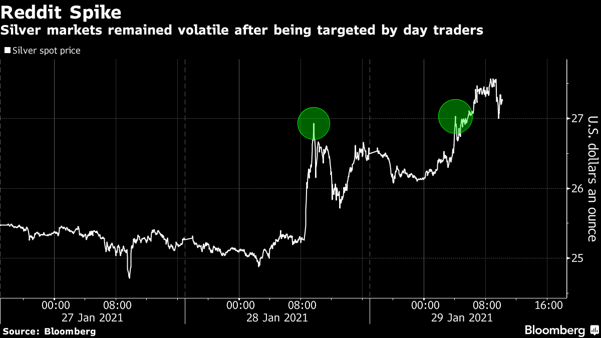 Silver Futures Soar 8%, Rise Above $29 As Reddit Hordes Pile InUpdate (1800ET): It was the one print everyone was waiting for, and here it is: silver futures opened up 7%, surging from $27/oz to a high of $29.095 following a weekend of speculation that the next big squeeze on WSB's radar is silver. And whether that's true or not, may no longer matter in a world where - as described below - there is virtually no physical silver to be purchased.
