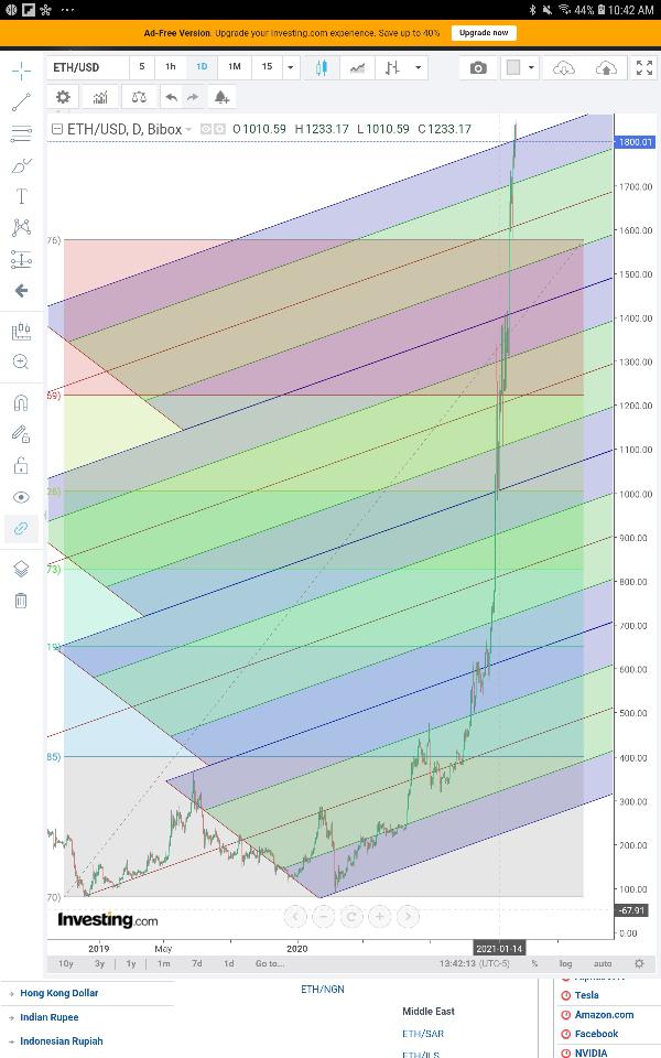 ETHEREUM - Was asked to give a read on other popular Cryptos, so here's the first. Nice timing Scott!! As you'll note from the chart, ETH just completed a Quad Fork move at 1805, and it fulfilled the double bottom target which the fib tool reveals was 1576. So just like rockets launched from CC in FLA land harmlessly in the ocean, this one is already losing altitude headed for splashdown. This post replies to the last Bitcoin read, which still has plenty of fuel in its rocket booster before hitting the renowned glass dome. Operation Fish Bowl anyone?? :)