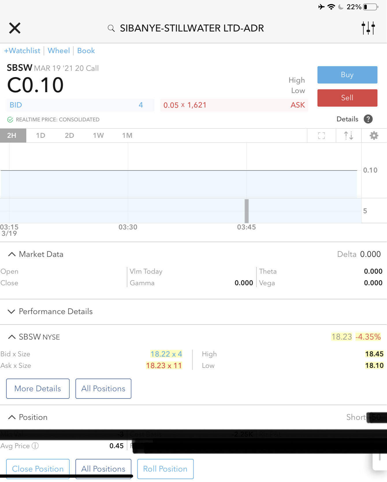 Right now, today, i no longer have to concern myself w/ SBSW as long as it does not breach 20 even though I own a lot of SBSW equity. I ledger the recent dividend, book today’s premium profit, and look forward same profit again next month as the time-decay takes hold and does wet work.