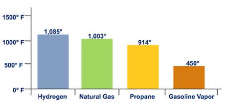 Accidents The deniers also claim it is very dangerous. Fact: it is certainly explosive and must be handled and stored properly but it is not much worse than natural gas. The auto-ignition temperatures of hydrogen and natural gas are very similar. Both have auto-ignition temperatures over 1,000°F, much higher than the auto-ignition temperature of gasoline vapour for example, as shown here by h2tools.org