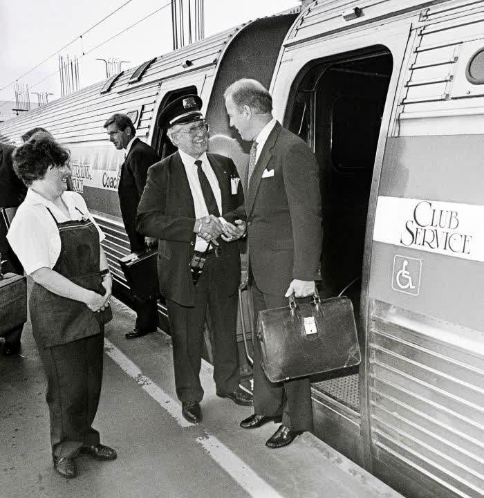 Photo: Redux/Eyevine. President Joe Biden, who made the three-hour round-trip to the Senate every day for 36 years, steps off an Amtrak in 1988