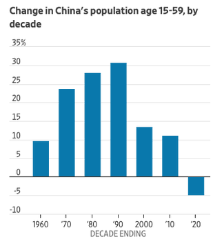 The demographic squeeze is far more severe in China, which unlike the U.S. admits almost no immigrants and for years limited families to one child. On Tuesday, authorities announced that the population in China had grown just 5.4% in the past decade. The working-age population—those ages 15 to 59—shrank 5%, or roughly 45 million people. When worker shortages began emerging over a decade ago, factories began moving to poorer inland provinces and then cheaper countries including Vietnam. In recent years some indicators suggest jobs are getting harder to fill, though the data might not be nationally representative.