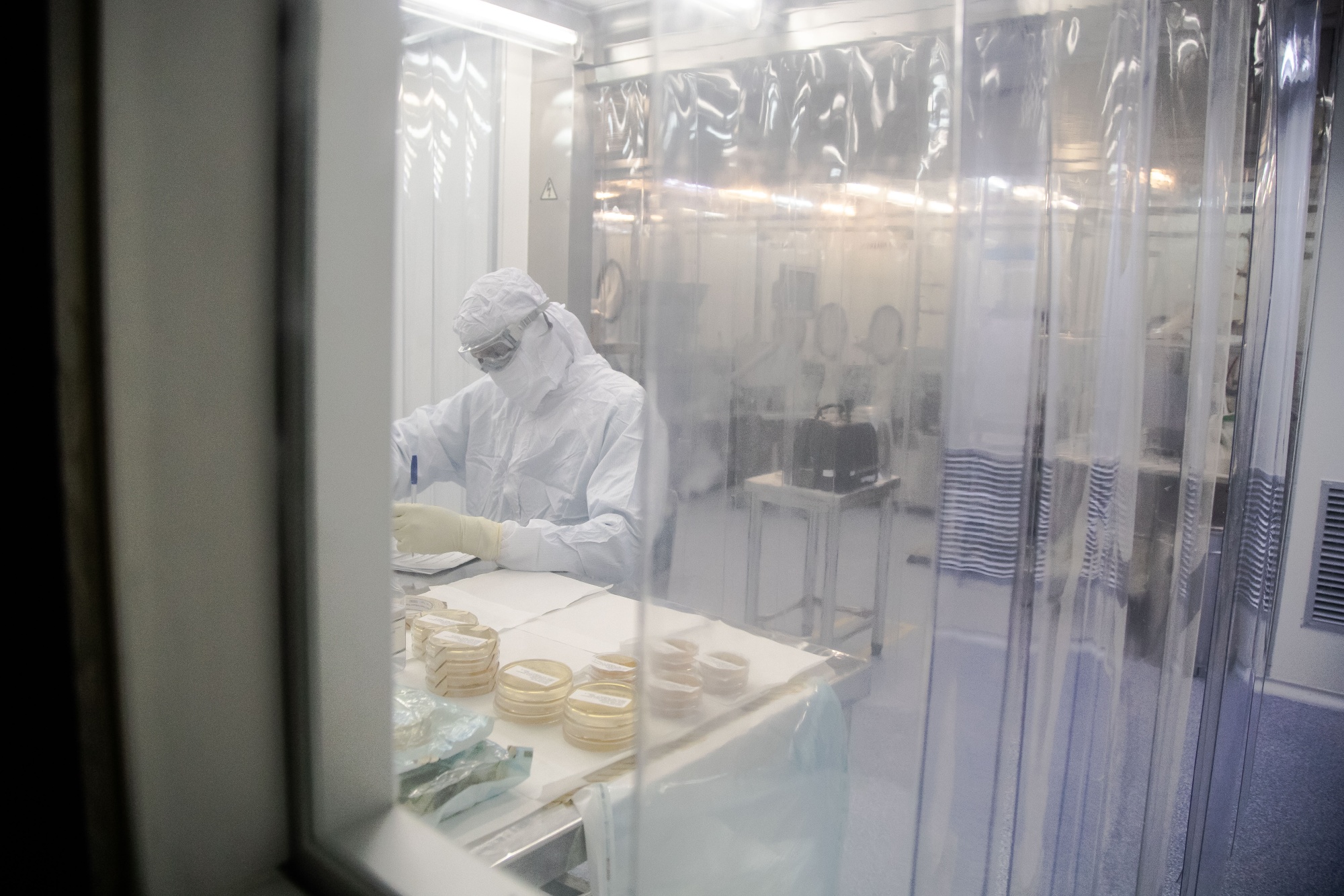 A lab technician works on the production of the AstraZeneca Covid-19 vaccine at a Fiocruz lab in Rio de Janeiro on May 27.