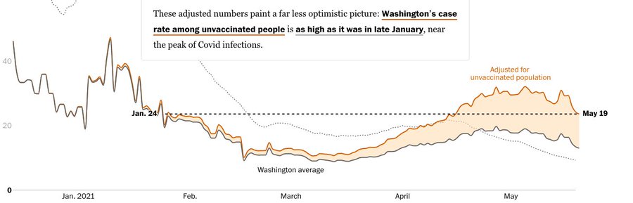 The data on plummeting covid infections in the US masks that among the subgroup that is too stupid to get vaccinated, the rate of new infections is as bad as it was in January. So for everyone else, the improvement is even better than it may first appear. washingtonpost.com