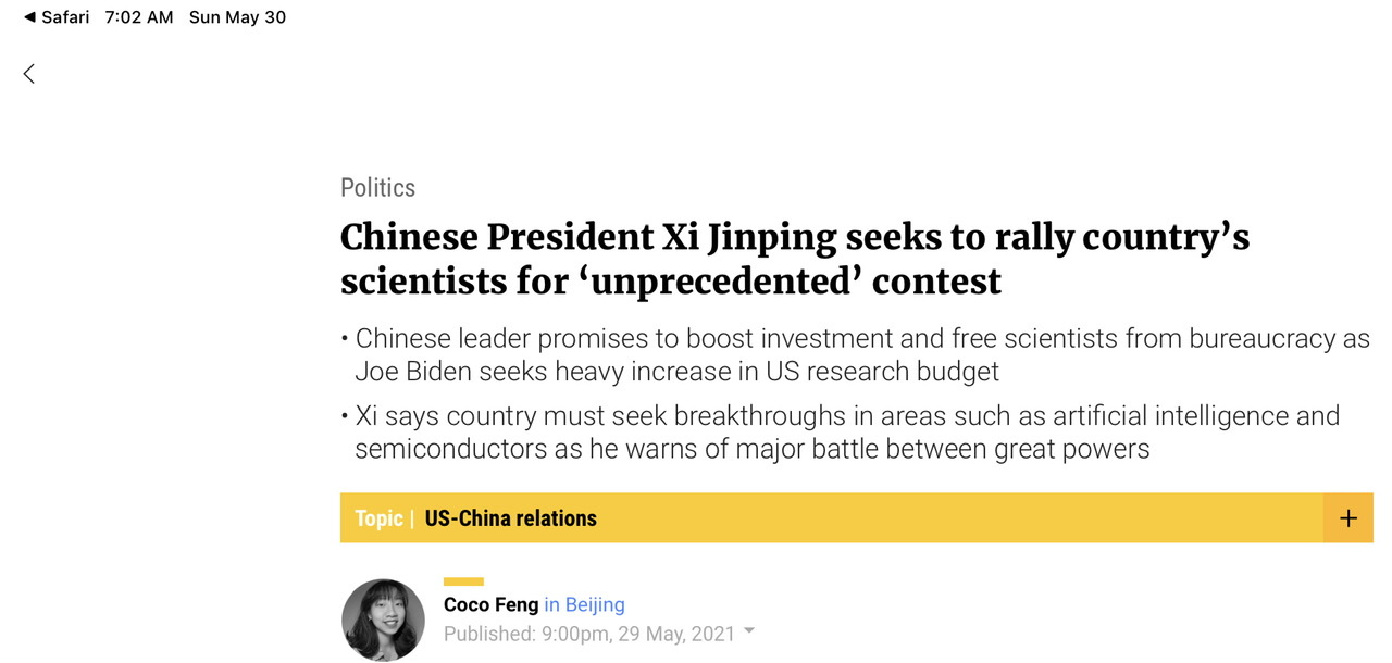 Chinese President Xi Jinping seeks to rally country’s scientists for ‘unprecedented’ contest