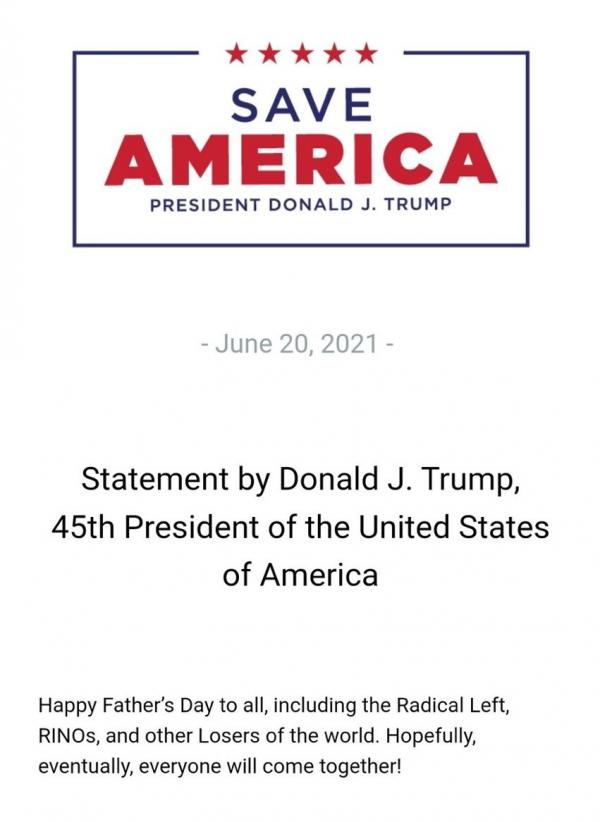 Loser Ex-President wishes well to the losers of the world. Don't know what that has to do with Fathers Day, but that's his sentiment on this day.