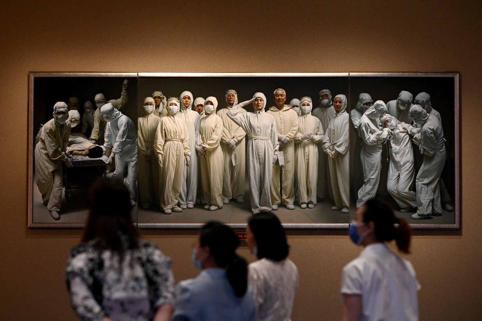 A painting depicting healthcare workers displayed at the Museum of the Communist Party of China in Beijing on June 25.