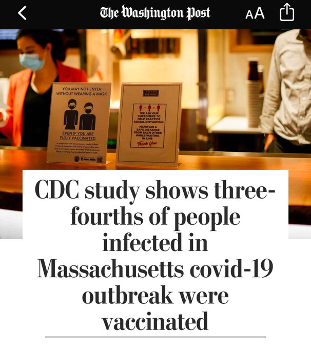 Now we see reports that episode that freaked out CDC was outbreak over crowded July 4th in part of heavily-vaccinated, deep-blue Massachusetts famous for its gay scene. Not a Trump hotspot.
