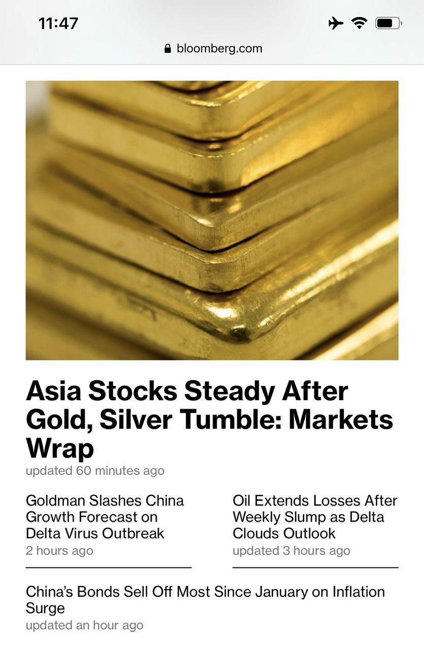 I understand the Bloomberg top of page items, separately, but not together … something about China growth down, inflation up, global oil down, and gold and silver get smacked.