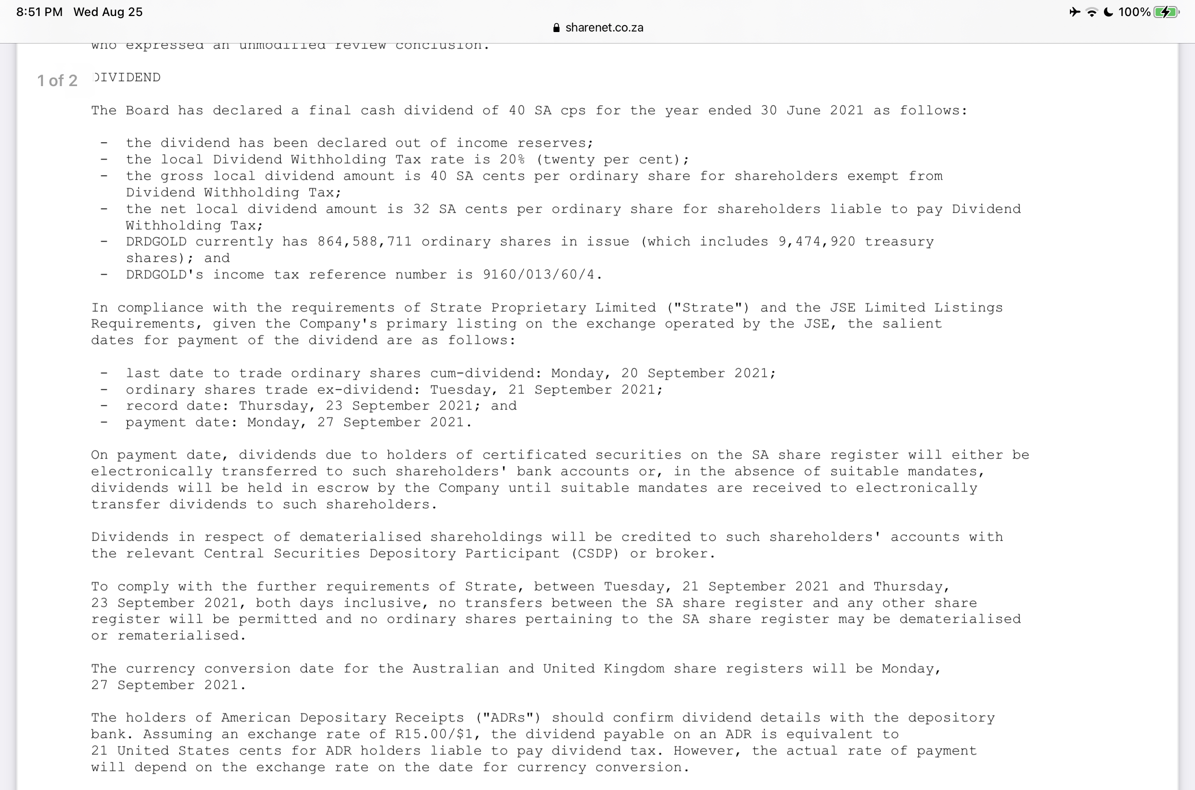 I attributed the Friday DRD wobble to gold wobble