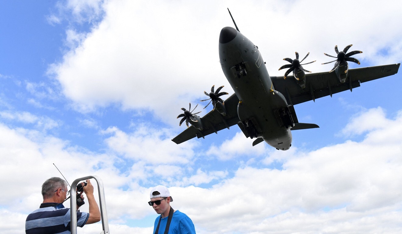 A Royal Air Force transport aircraft prepares to land at RAF Brize Norton in southern England, on Wednesday.