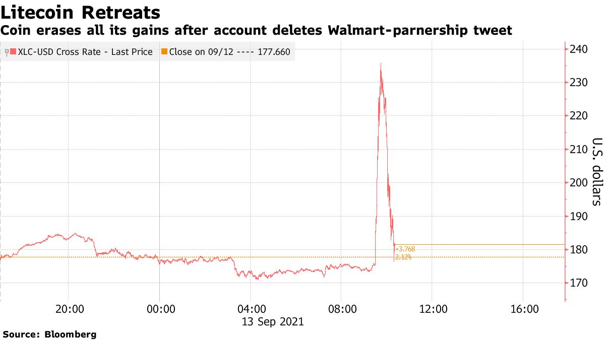 To: maceng2 who wrote (178215 ) 9/13/2021 6:36:35 PM From: TobagoJack Respond to of 217764 Back to crypto metaverse stuff, indicating what can happen The fun stuffbloomberg.com Crypto Market Mischief Follows Week of Rising Regulator Scrutiny Vildana Hajric 14 September 2021, 01:36 GMT+8 No financial market wants scammers breaching the walls. But now is a particularly bad time for cryptocurrencies to be showing vulnerability to mischief. A significant spike in Litecoin followed quickly-debunked headlines that Walmart Inc. , the world’s largest retailer, had agreed to accept the cryptocurrency as a payment mechanism at its stores. Litecoin’s own verified Twitter account posted a link to the press release in a tweet that was later deleted . Charlie Lee, creator of Litecoin and managing director of the Litecoin Foundation, described the tweet and press release as an “unfortunate situation” in an interview with Bloomberg News. “The @litecoin handle, we have three people who control that and one of the people this morning, before I woke up, saw the GlobalNewswire [press release] and saw Yahoo News posting it and CNBC posting it and he thought it was true because he didn’t know better,” Lee said. “Pretty soon after that he realized he had made a mistake, that it was fake and he deleted it.” Ed Moya, senior market analyst at Oanda Corp., said “itchy triggers” contributed to the initial market moves. “There’s this kind of expectation in the crypto space that you’re going to see more companies start to show how they’re going to embrace using cryptocurrencies or blockchain technologies, and it seems that there’s this belief that it’s not a matter of if but when,” Moya said. “And that’s why you have so many itchy trigger fingers here to buy any story that shows there’s a major commitment to cryptocurrencies by a large retailer.” Major cryptocurrencies gave back their advances after Walmart refuted the news. Litecoin -- which rose as much as 33% at one point -- erased nearly all its gains. Bitcoin, the largest digital asset, was down 1.7% as of 1:35 p.m. in New York after earlier having advanced roughly 4%. Other digital assets also retreated, with Bitcoin Cash, Ether and EOS all declining. The surge in Litecoin on the basis of what Walmart described as a “not authentic” press release comes as regulators are increasingly seeking to tighten their grip on the crypto space. U.S. Securities and Exchange Commission Chair Gary Gensler, who recently called crypto the “Wild West”, has signaled that he’s contemplating a robust oversight regime over the still-mostly unregulated industry. SEC’s Gensler Readies More Crypto Oversight to Protect Investors Coinbase Global Inc. , the largest regulated cryptocurrency exchange in the U.S., last week lashed out at the SEC after receiving a notice that the regulator would proceed with an enforcement action if the company went ahead with its so-called Lend product. Lend is one of a growing number of yield-earning products on the market that advertise rates significantly above comparable interest-generating accounts at major banks or credit unions. Coinbase Gets Wells Notice From the SEC on Lend Product Bloomberg The headlines about Litecoin and Walmart had spread like wildfire on Twitter, where a lot of real-time crypto discourse occurs. Some crypto backers -- though they questioned why Walmart might choose to partner with a lesser-known and lesser-used coin than Bitcoin, for instance -- were thrilled to see another big name getting behind the movement. “This went from being extremely good news for crypto that strengthened the ‘polychain’ thesis to a black eye on the space in a matter of minutes,” said Stephane Ouellette, chief executive and co-founder of FRNT Financial. “Threats of market manipulation have been one of the primary focuses of regulators around these assets and to say this will get their attention is an extreme understatement.” But Lee, of the Litecoin Foundation, said he didn’t think the scam would necessarily trigger additional regulatory scrutiny. “This happens with the regular stock market also. It happens a lot more with the regular stock market than with crypto. But I’ve seen it happen a few times with crypto,” he said. Scams in crypto are not new. In the summer of 2020, the Twitter accounts of some of the most prominent U.S. political and business leaders were hacked in an apparent effort to promote a Bitcoin scam. The targeted accounts included Barack Obama and Joe Biden as well as Jeff Bezos and Warren Buffett. The efforts behind the Litecoin hoax included the creation of an email address based on a sham domain name, as well as a fake news release that included quotes attributed to real Walmart executives. The release had been submitted to a known public relations wire service and was picked up by major news outlets including CNBC, Reuters and Bloomberg News. While hoaxes that move asset prices crop up in financial markets all the time, cryptocurrencies would seem to provide particularly fertile ground for deceivers. Unlike stocks, trading is mostly untraceable -- scammers leave few tracks for regulators to follow. And it doesn’t take much to move the assets. Traders are conditioned to expect hysterical price reactions on flimsy news -- like when, say, Elon Musk tweets his approval of a crypto project.— With assistance by Elaine Chen Before it's here, it's on the Bloomberg Terminal. LEARN MORE