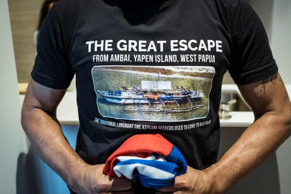 Yudha Korwa fled West Papua and came to Australia in 2006 after a massacre by the Indonesian military. Photograph: Christopher Hopkins/The Guardian“From the document … I can see that Australia is still waiting, they’re still staying quiet and lost their mouth and pretending like they didn’t know what was going on,” Korwa said.