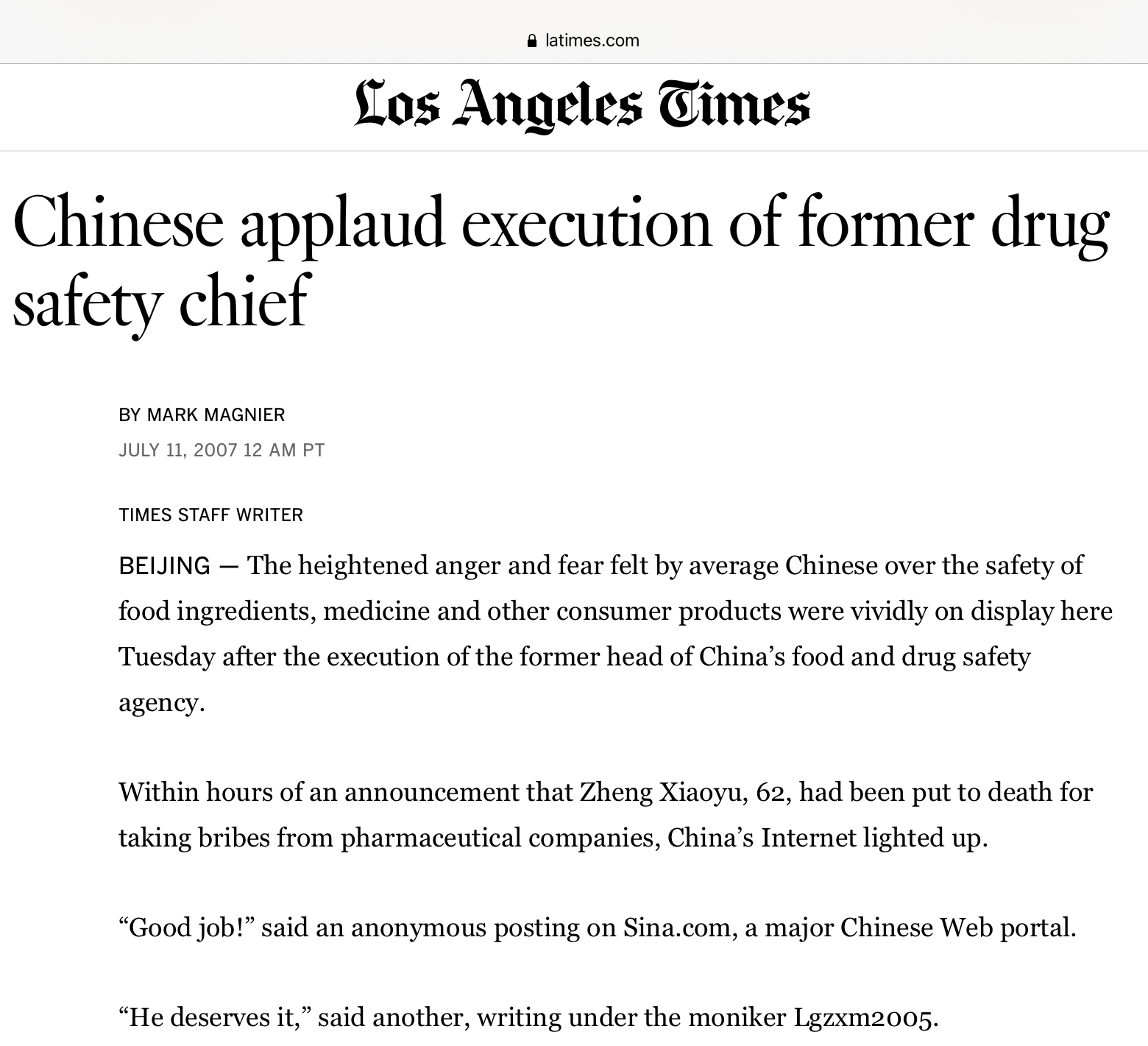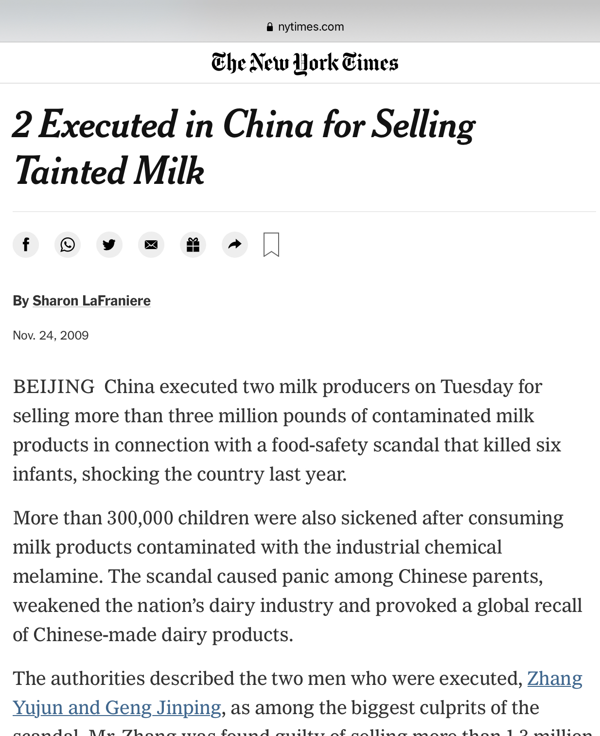 Since that era have not heard of any tainted milk or FDA wrongdoing in China. Odd coincidence.