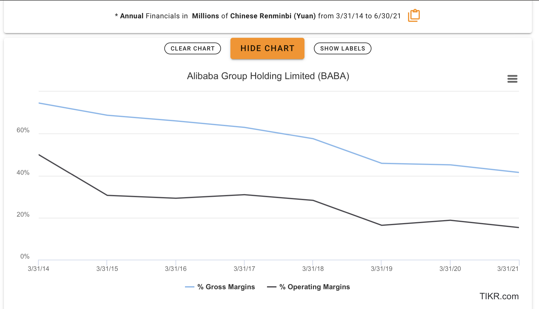 re BABA and Chinese Stocks - maybe they are all speculation. I decided to sell my remaining 9988.Hk shares at a 17% loss. looking back, I should have bought Tencent for a bet on China. It has the same risk with China (albeit more assets beyond China), but is better on any qualitative factor I have checked for (leadership, gross margin trends, transparency of financial statements).
