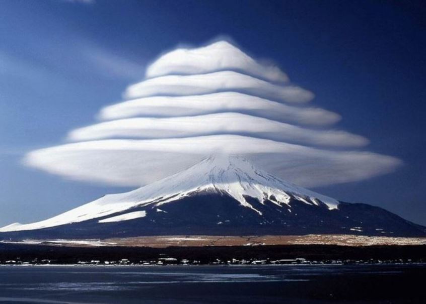 Perfectly formed lenticular clouds ..