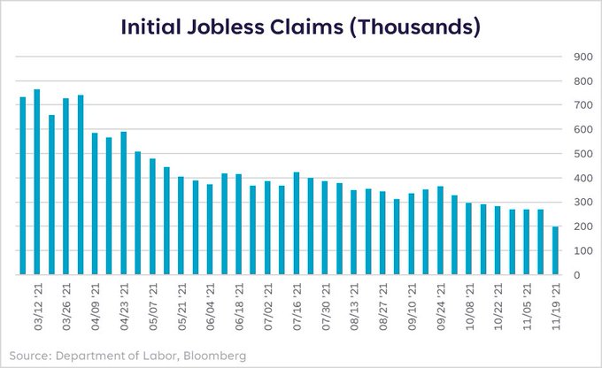 initial jobless claims at 199,000 for Nov 19th represents the lowest level seen