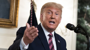 The latter is pegged at 457 million potential users generating $US35 billion ($49 billion) in annual revenue. Trump conjured up those figures by adding together the market reach and revenues of Netflix, Twitter and the radio and podcast firm iHeartMedia.
