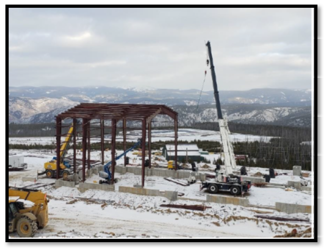 Flotation building civil work is well underway, and an additional steel erection crew, and two additional cranes have mobilized to site to complete erection.