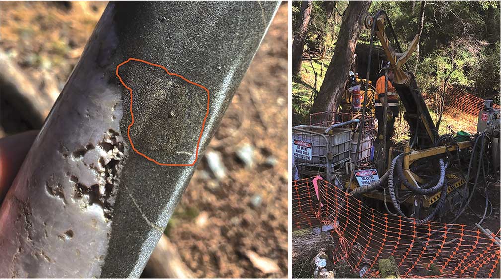 Fig 1 – Golden Bar Prospect Drill core section showing massive sulphide mineralization from the quartz. To be submitted for assay very shortly. Fig 2 – Drill rig with unnamed adit at Golden Bar Prospect in background globenewswire.com