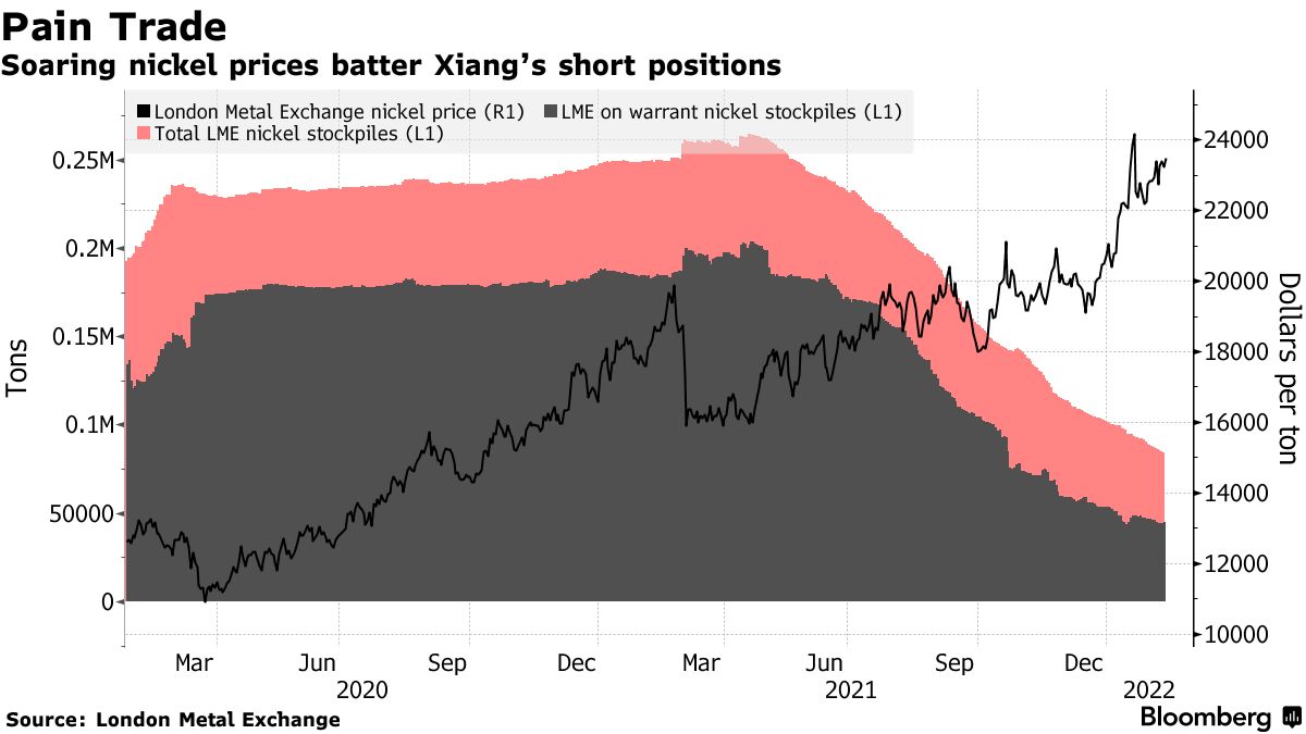 To: sense who wrote (183952 ) 2/14/2022 6:30:12 PM From: TobagoJack Read Replies (1) | Respond to of 217669 elsewheresville, other 'stuff' happening and it might be either do stuff or be stuffed let's see if Xiang is caught shortbloomberg.com Trader Known as ‘Big Shot’ Battles Mystery Nickel Stockpiler Xiang Guangda’s Tsingshan has amassed large short positions Unidentified stockpiler has helped push prices to decade high Alfred Cang 14 February 2022, 23:59 GMT+8 One of Tsingshan’s production facilities in Indonesia.Source: Google MapsIn Chinese commodity circles, he’s known as “big shot” -- the man who controls the world’s largest nickel producer and isn’t afraid to place big derivatives bets on where prices are headed next. Now Xiang Guangda has emerged at the center of a market drama that’s fueling some of the largest price swings in years for a key ingredient in the fight against climate change. On one side is Xiang and several of his Chinese peers, who’ve amassed short positions in nickel derivatives to hedge their production against the risk of falling prices, according to people familiar with the matter. On the other is an unidentified nickel stockpiler, who controlled at least half of the inventories on the London Metal Exchange as of Feb. 9. As speculation swirls about the mystery stockpiler’s identity, Xiang finds himself in an unusual position: on the losing side of a trade. Nickel has surged more than 25% over the past year, touching the highest level in a decade last month. Demand is booming for the metal in electric-car batteries, while market indicators suggest supplies are tight. Inventories on the LME have tumbled to the lowest level since 2019 and the metal’s spot price has reached the highest premium ever to the three-month futures contract. “There’s a bit of a squeeze on the LME,” said Jim Lennon, a senior commodities consultant at Macquarie Securities in London. The episode highlights the outsized influence of a handful of players in the market for nickel, whose scarcity Elon Musk has identified as one of the biggest hurdles to ramping up production of EV batteries. Xiang has been a key figure in some of the metal’s biggest swings in recent years, helping drive prices sharply higher by snapping up inventories in 2019 and triggering a brief tumble in early 2021 after unveiling a cheaper way to produce supplies for batteries. It’s unclear how much of a risk the nickel rally poses to Xiang’s closely held Tsingshan Holding Group Co. , but the company’s short position could offset some of its earnings from producing the metal if the gains persist. Tsingshan didn’t respond to multiple requests for comment. The company, founded by Xiang and his wife He Xiuqin, got its big break in the late 1980s with a business making frames for car doors and windows in China’s eastern city of Wenzhou. It went on to pioneer the large-scale use of nickel pig iron, a semi-refined product and low-cost alternative to the pure metal, to make stainless steel. Tsingshan jolted the market last year by saying it planned to make battery-grade nickel using an alternative process, refining it up from materials previously reserved only for stainless steel. Read more: The Chinese Steel Giant That’s Roiling the Global Nickel Market The company is currently running three nickel matte production lines with capacity of about 3,000 tons a month. It aims to increase that capacity to 100,000 tons per year by October 2022. If it succeeds, Tsingshan would solve one of the biggest bottlenecks for electric battery production -- and potentially put downward pressure on nickel prices. The company started building the short position last year in part because Xiang wanted to hedge rising production and believed the surge in nickel prices would fade, according to one person familiar with his thinking. The cost of Tsingshan’s production in Indonesia is lower than $10,000 a ton, compared with a benchmark price of over $23,000 on the LME. For now, though, there’s little sign that market prices are poised to fall. Goldman Sachs Group Inc. predicted last month that nickel demand will outstrip supply by 30,000 tons this year, up from an earlier estimate of 13,000 tons. The unidentified stockpiler held somewhere between 50% and 80% of nickel warehouse warrants monitored by the LME, according to daily data from the exchange. The warrants entitle traders to LME metal, and the exchange reports the concentration of holdings in bands rather than as precise figures. The position has been maintained for almost a month, a relatively long period of time that suggests the stockpiler is either very bullish or could need the metal for its own future supply contracts. “I think part of what’s going on is that there’s been a bit of a mad panic to stockpile material, because of the rapidly growing market for batteries,” Lennon said. The big question is whether Xiang will continue to battle it out with bulls or unwind his short position. One complication for the Chinese tycoon: because his production doesn’t match the grade of nickel used in settlement on the LME, the contracts aren’t a perfect hedge. That means they could become a cash drain if he’s forced to stump up more margin or roll over his positions. There’s some circumstantial evidence that Xiang isn’t ready to give up. Open interest in LME contracts expiring in March has in recent weeks begun shifting to longer-dated contracts. While it’s hard to know for sure what’s behind the move, it could be a sign that Xiang and other short sellers are digging in for the long haul.— With assistance by Mark Burton, Martin Ritchie, Jack Farchy, and Tom Redmond