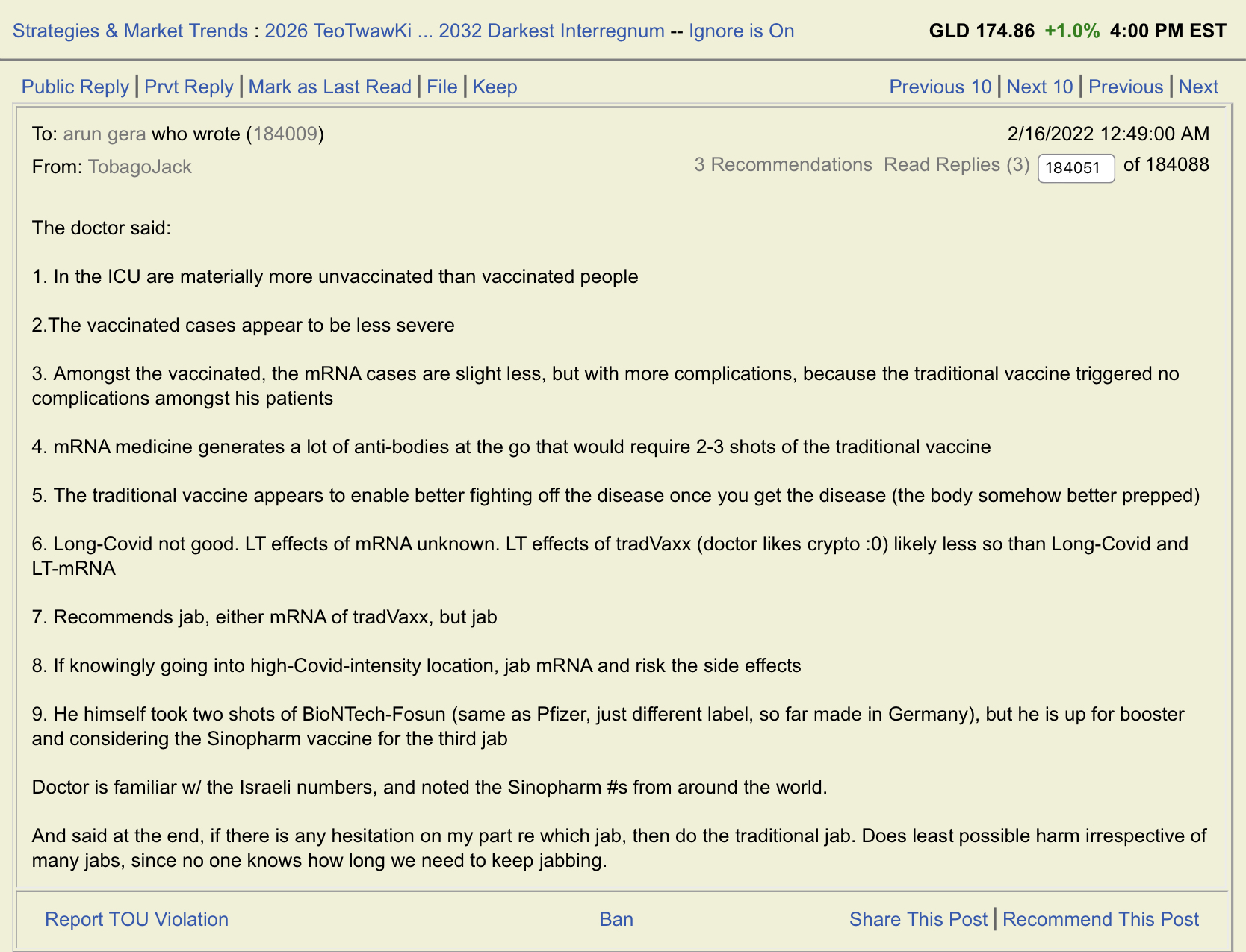 Am not sure, but it is possible, and I am guessing, but shall at another time ping the very busy doctor, that what we best do is to get a jolt of antibody mobilization by mRNA vaxx liquid, and do call-of-duty reserve calling, for T cell rallying by tradVaxx inactive virus liquid, and thus his points (4), (5), (7), (8), and (9)