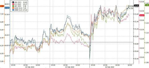 To: TobagoJack who wrote (184385 ) 2/24/2022 9:06:27 PM From: TobagoJack Respond to of 217620 Need to add <<URNM >> in case uranium goes unobtainium or otherwise clench In the below case am guessing there would be financial penalties on the Swedes, which presumably would aid in the Russian war effort, and at the same time allow Russian to double-spend the undelivered uranium to others All very complicated and complicatingzerohedge.com Uranium Stocks Surge After Swedish Utility Giant Suspends Deliveries Of Russian Uranium And Nuclear Fuel The uranium sector got an unexpected boost today when Swedish state-owned utility Vattenfall announced it will cease taking any deliveries of nuclear fuel from Russia for its nuclear power plants following Russia’s invasion of Ukraine. The company on Thursday said it has decided to stop planned deliveries and to not place any new orders from Russia until further notice. Vattenfall added the operation of its nuclear power stations will not be affected as its procurement strategy is to have multiple suppliers from different countries. From the press release :We are deeply concerned by the serious security situation in Europe and Russia’s invasion of Ukraine. We have therefore decided that no planned deliveries from Russia to our nuclear power plants will take place until further notice. We will also not place any new orders from Russia to our nuclear power plants until further notice. Our procurement strategy is based on having multiple suppliers from different countries, in order to safeguard our independence and security of supply to our nuclear power plants. Based on this we also have plans to manage possible irregularities in the supply. The operation of our nuclear power plants will therefore not be affected by these decisions. The company, which generates electricity from a range of sources, including hydro, nuclear, fossil fuels and wind, aims to phase out fossil generation and increase the share of renewables. In 2021, nuclear accounted for 40.4 TWh of the company’s total generation of 111.3 TWh, while wind provided 11.1 TWh. According to the company’s website, in 2020, nuclear energy accounted for around 30% of Sweden’s electricity production. The news sent North American uranium miners soaring, with Cameco gaining as much as 12% in Toronto, on trading volume double the 20-day average so far. Energy Fuels was up nearly 11%, while other gainers include: NexGen Energy +9.8%, Uranium Energy +9.4%. [url=] [/url]