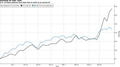 US oil & gas stocks are trading at a steep discount to oil futures and have a lot of catching up to do - the sector is currently pricing WTI at $64 a barrel.