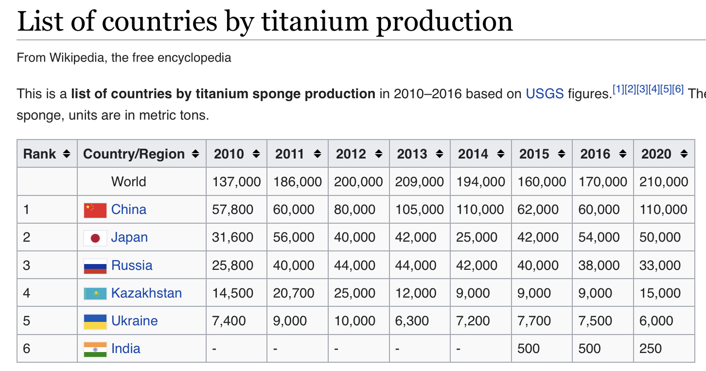 … The US remains particularly vulnerable to disruptions in the global titanium supply chains, as it imports 95% of the titanium it consumed in 2019.