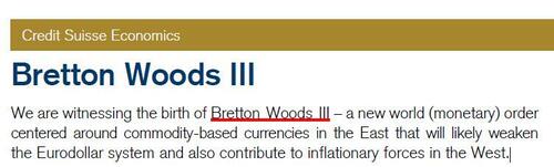 One month ago, former NY Fed repo guru and current Credit Suisse strategist Zoltan Pozsar stunned Wall Street when in the culmination of a series of posts analyzing the consequences of the Ukraine war (which he views as a "crisis of commodities") the highly respected analyst wrote that "we are witnessing the birth of the Bretton Woods III - a new world (monetary) order centered around commodity-based currencies in the East that will likely weaken the Eurodollar system and also contribute to inflationary forces in the west" (much more in our full discussion of his recent thoughts)