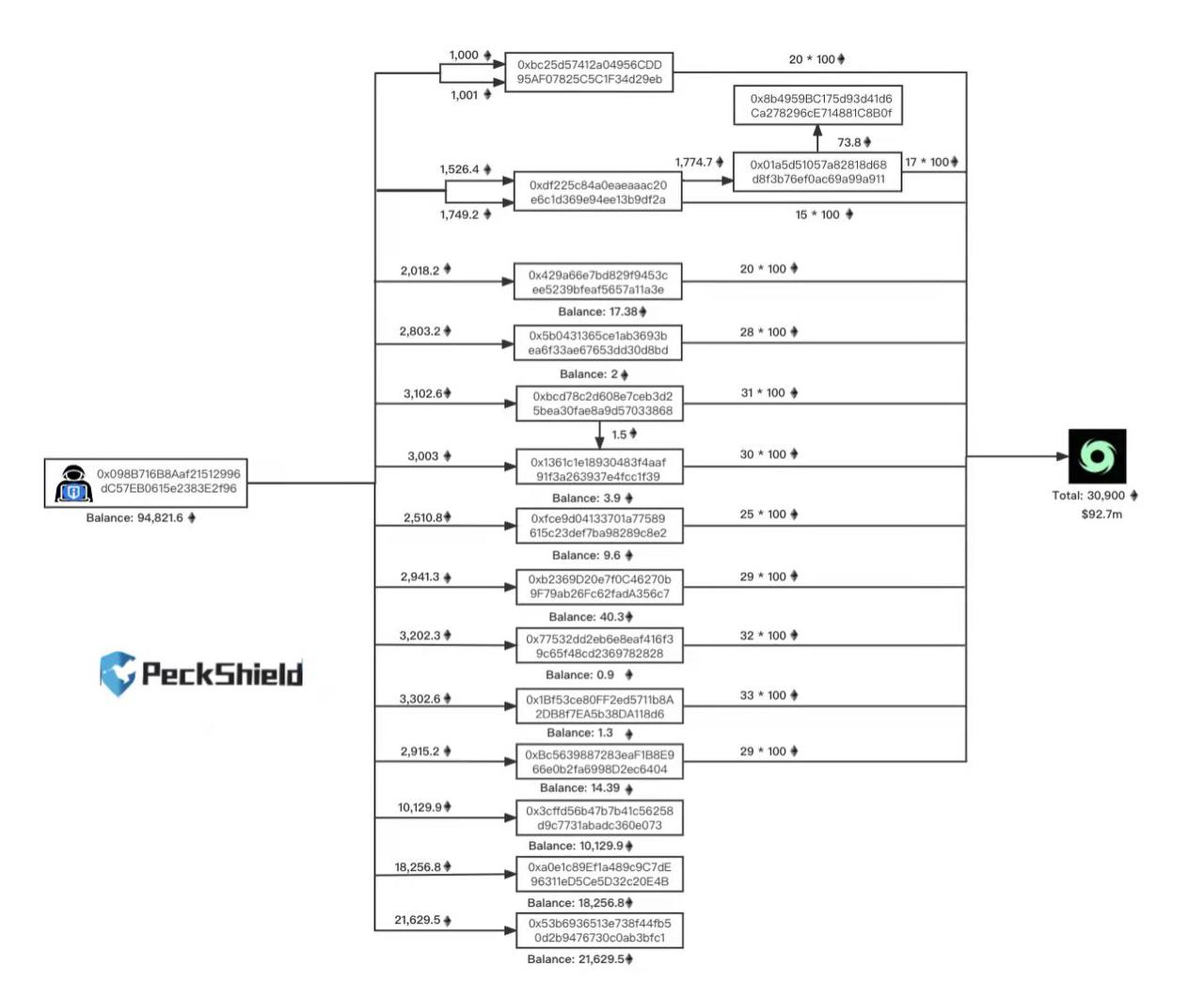 While the amount retrieved represents a small portion of the $600 million in crypto that was swiped, the accomplishment raises hopes of recovering more of the stolen funds even as hackers continued to move them around. In the past week or so, roughly 56,200 Ether, or about $170 million worth of stolen cryptocurrencies was moved out of the main address on the Ethereum blockchain used by the perpetrators, blockchain data shows. The stolen funds were all sent to newly created addresses, with some of those addresses in turn transferring the tokens to Tornado Cash. All told, more than $230 million of the crypto has moved from the wallet, according to blockchain data firm Peckshield. As of April 21, nearly $250 million worth of stolen funds from the Ronin hackers’ main address were moved out, more than $90 million were moved to Tornado Cash. Source: PeckShield Tornado Cash is designed to break the link between the sender and receiver’s addresses of the transactions, making the supposedly public transactions on blockchain hard to track. Blockchain compliance firm Chainalysis, which has experience in “unmixing” Bitcoin transactions, said Binance’s ability to freeze the funds is “a win” for victims from the Ronin hack. “Binance’s action today to freeze funds stolen from North Korean-linked hackers --- despite their use of complex obfuscation techniques...was made possible by world-class investigators with the right tools and collaboration,” Erin Plante, senior director of investigations at Chainalysis, said. A spokesperson for the U.S. Treasury Department said the identification of the address from the agency last Thursday will “make clear” to other virtual-currency actors that “by transacting with the address, they “risk exposure to U.S. sanctions.” On Friday, the U.S. agency added three more addresses to its sanctions list in connection with the Ronin hack. The U.S. government “continues to take disruptive action against entities facilitating the movement of the stolen virtual currency,” the spokesperson said. “We call on the crypto community to lock its digital doors.” In the wake of the Treasury’s announcement, Tornado Cash signaled it was taking steps of its own to block sanctioned wallets. It announced last Friday on its Twitter account that it is using a free compliance tool developed by Chainalysis to block crypto wallets targeted by the U.S. Office of Foreign Assets Control. The tool, launched by Chainalysis in March, is a free smart contract, or a program run on a blockchain, that scans for crypto addresses that are sanctioned by several governments. Chainalysis also provides paid products that alert their customers to indirect exposure to sanctioned addresses and other addresses they identified as linked to sanctioned entities beyond what’s included on the OFAC’s sanctions list. A spokesperson from Chainalysis said the firm cannot confirm Tornado Cash is using their tool because the program is not embedded on Tornado Cash’s own codes, or smart contract. According to Tornado Cash, the compliance tool was only used to block sanctioned addresses from using the user-facing decentralized application. In theory, blocked addresses can still gain access to the underlying technology of Tornado Cash by transferring the crypto to another address first. Tornado Cash founders did not respond to multiple requests for comment about the tool and its effectiveness. On Friday, one of the addresses that received 10,129.935 Ether from the hacker’s main address sent about 1,528 Ether to a second new address , according to blockchain data. That second address was sending Ether in batches of 100 Ether each to Tornado Cash.