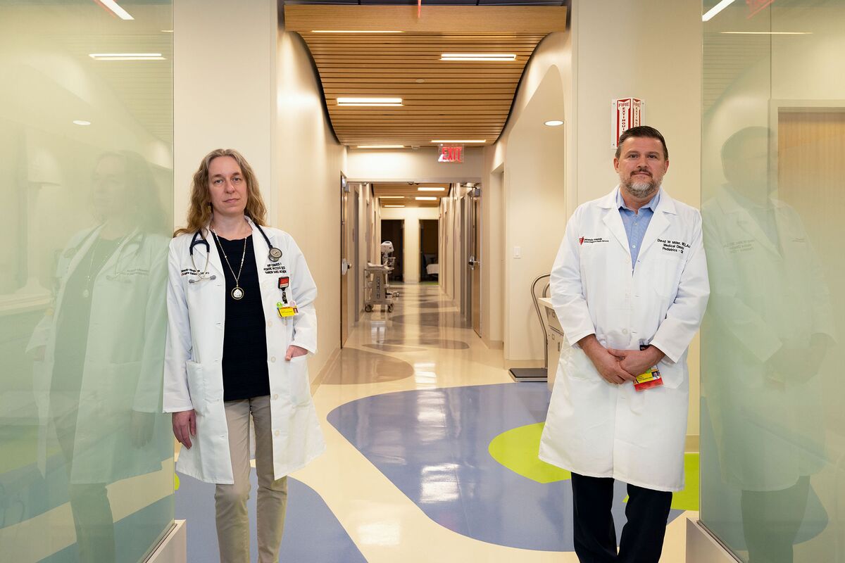 She’s talking in between seeing patients in a room normally used for psychologists to observe children through a two-way mirror. It’s subdued compared with the bright, happy forest landscapes that cover the walls and ceilings throughout the lobby and hallways of Rainbow Babies. Edwards and Miller see their patients wherever they can find an open spot in a wing of the hospital for specialty care. Edwards does all the administrative work herself. Her own kids know she won’t be home in time for dinner most Fridays.