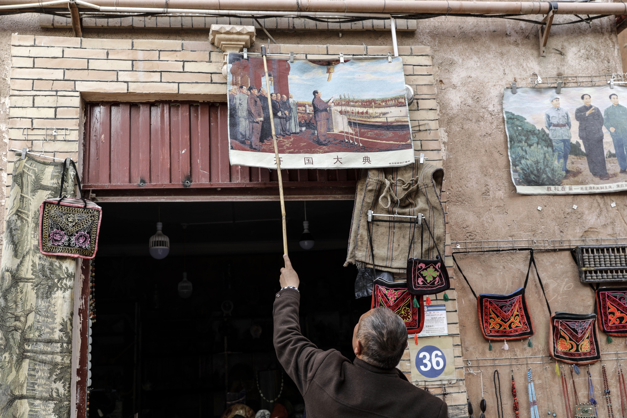 Xi Jinping's image is unavoidable in Xinjiang, as are the police patrols. Modern buildings and businesses sit alongside mom and pop street vendors.