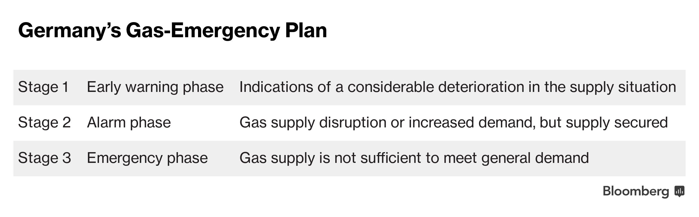 Germany, which relies on Russia for more than a third of its gas supplies, enacted the initial “early warning” phase at the end of March, when the Kremlin’s demands for payment in rubles prompted Germany to brace for a potential cutoff in supply. The third and highest “emergency” level would involve state control over distribution.
