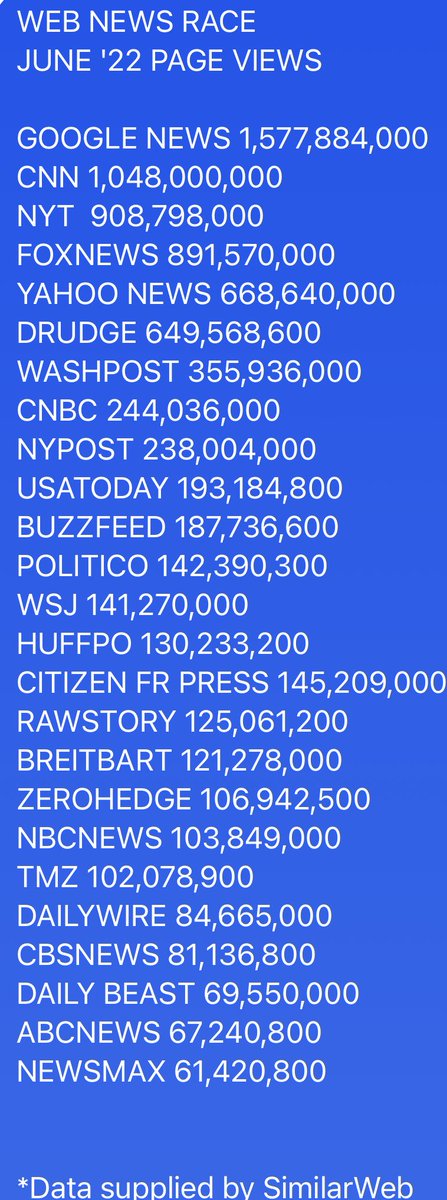 I REMEMBER WHEN DRUDGE HAD SEVERAL BILLION HITS. THEY ARE SMALLER THAN YAHOO NOW...