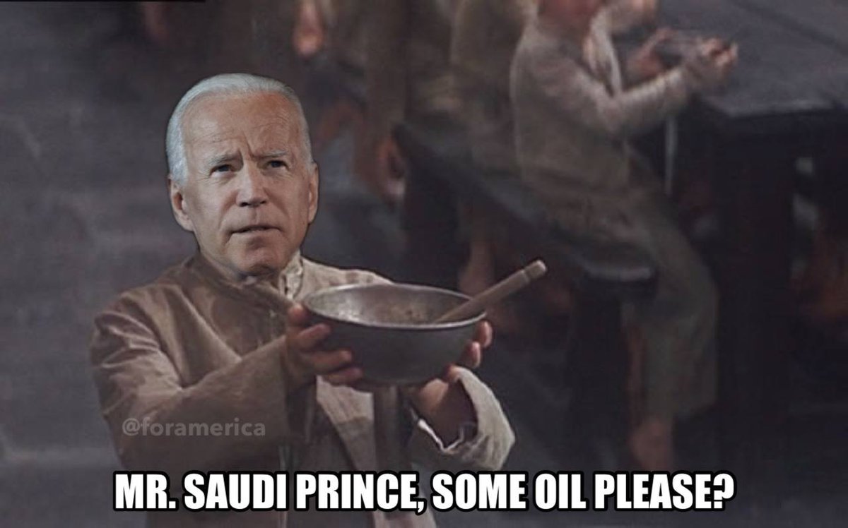 BIDEN IN SAUDI ARABIA TO BEG AFTER KILLING U.S. PIPELINE