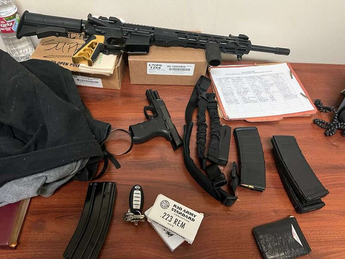 The guns and magazines that authorities seized from Guido Herrera following his Feb. 5, 2022, arrest at the Galleria Mall in Houston.