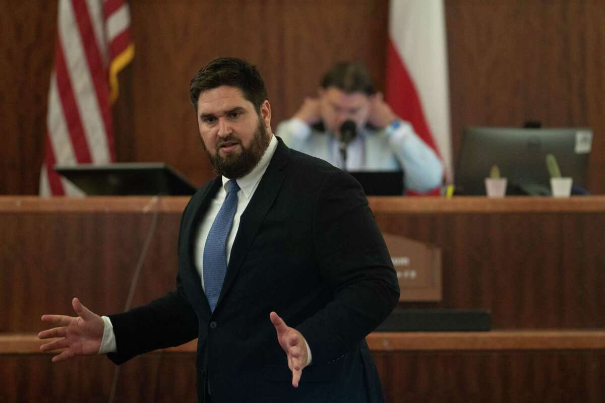 Harris County Prosecutor Jacob Salinas makes arguments in a sentencing hearing for Guido Herrera in Judge Franklin Bynum’s County Criminal Court District 8, Thursday, July 14, 2022, at the Harris County Criminal Courthouse in Houston.