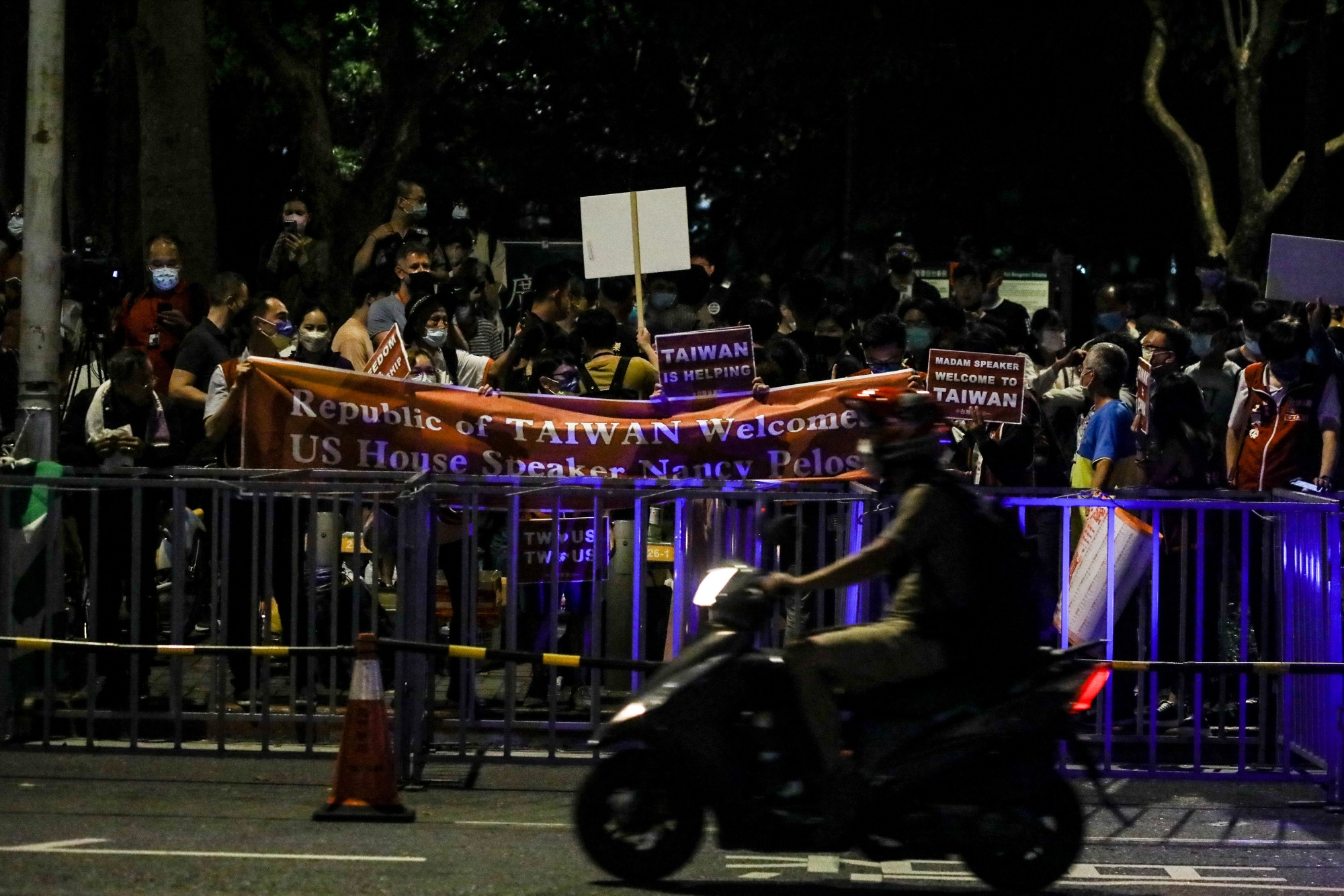 Supporters wait for the arrival of Pelosi in Taipei on Aug. 2.