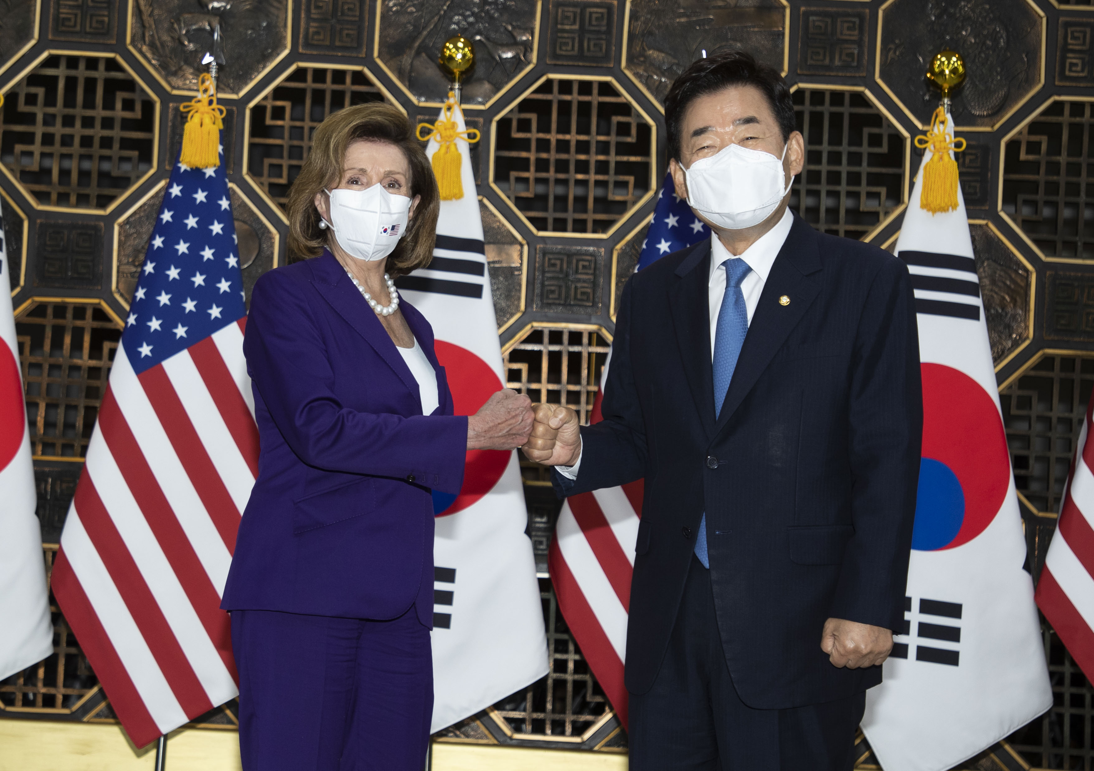 Pelosi with and South Korea National Assembly Speaker Kim Jin-pyo on Aug. 4.