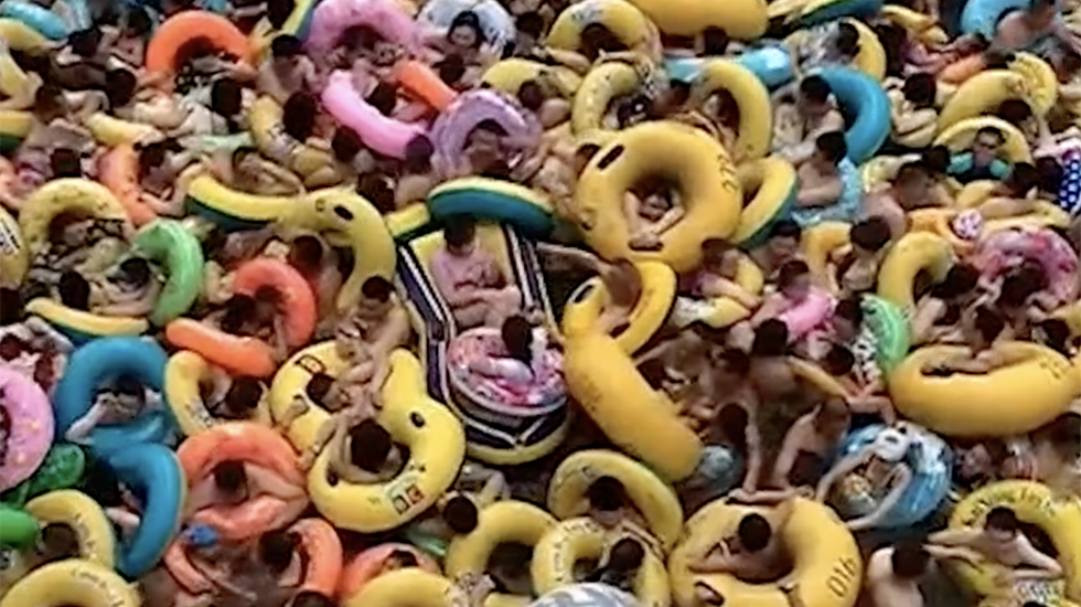 Relaxing? Video Shows Pool In China Packed With Visitors And Pool Floats