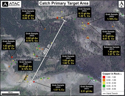 "We are very impressed with the results we have seen from Catch so far," stated ATAC's president and CEO, Graham Downs. "We've already defined multiple drill-ready targets, with numerous soil anomalies yet to be followed-up. This has all the hallmarks of a significant new grassroots copper-gold discovery, and we look forward to drilling the first ever holes on this property in the coming days."