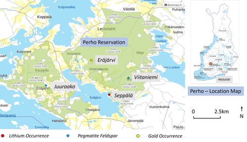 Figure 1. Perho reservation over the Eräjärvi LCT pegmatite field.