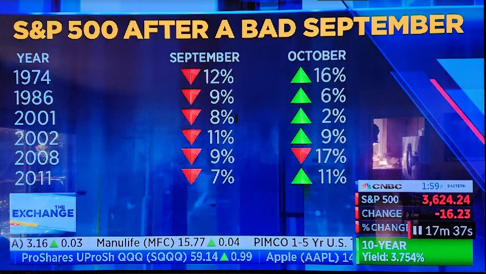 Does anyone have handy how much the market dropped in September? I believe it was about 10%.